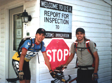 Finally! We made it through the night! We made it to the border! I don't think we'll make it through the inspection, that Customs guy with the rubber gloves is starting to scare me! |